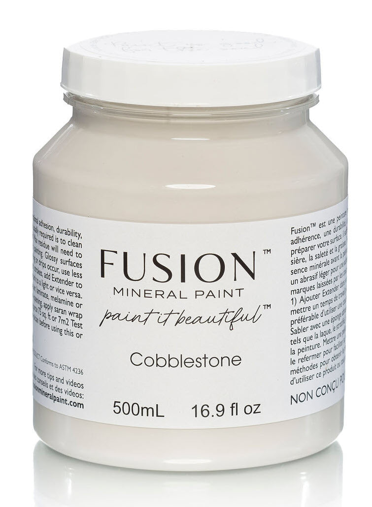 Note: Priming is usually not necessary with Fusion Mineral Paint. For bleed-through or knots, use Zinsser BIN Shellac-based primer. For dark-to-white transitions, use a mid-tone colour like Sterling as a primer.
