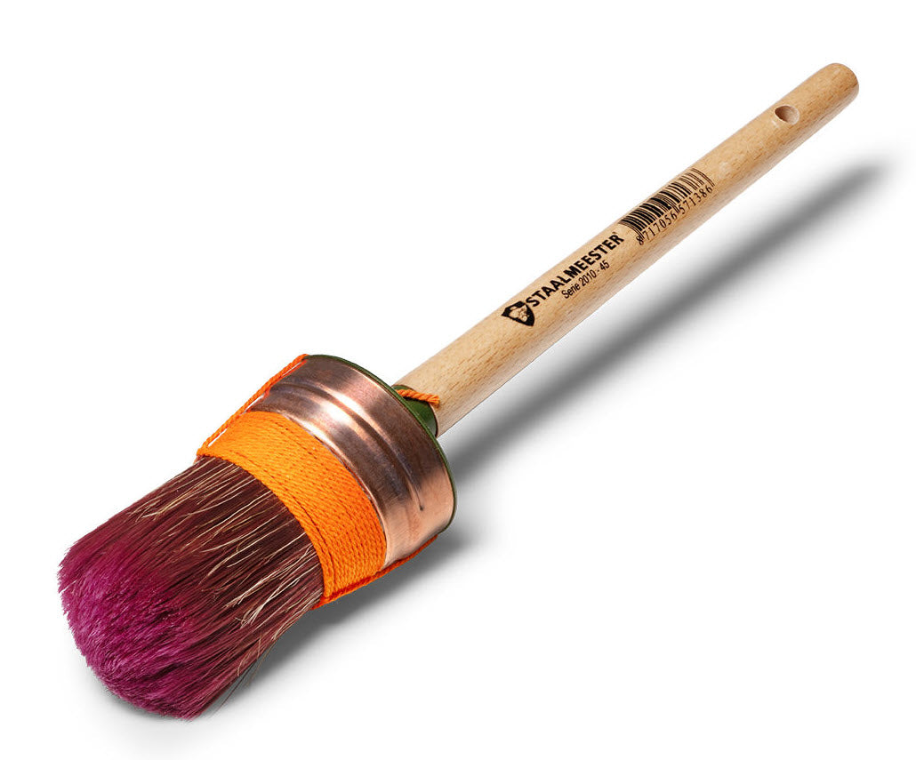 The oval brush is the most popular brush for furniture painting because the oval shape makes it easy to switch between narrow and larger surfaces with the same brush. The oval brush is only available in the Staalmeester® Original Series.
